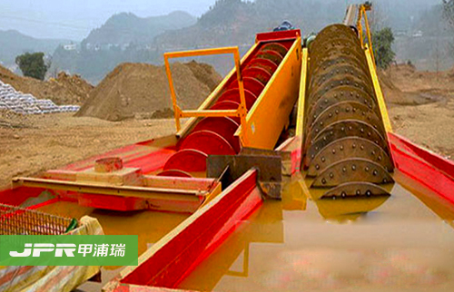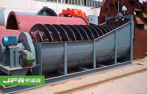 螺旋洗砂機是借助于大小、比重不同的固體粒在液體中的沉降速度不同的原理,細礦粒浮游在水中或溢流出,粗礦粒沉于槽底。由螺旋推向上部排出,來進行機 械分級的一種分級設(shè)備,能把磨機內(nèi)磨出的料經(jīng)過過濾,然后把粗料利用螺旋片旋片旋入磨機進料口,把過濾出的細料從溢流管子排出。該機底座采用槽鋼,機體采 用鋼板焊接而成。螺旋軸的入水頭、軸頭采用生鐵套,耐磨耐用,提升裝置分電動和手動兩種。
